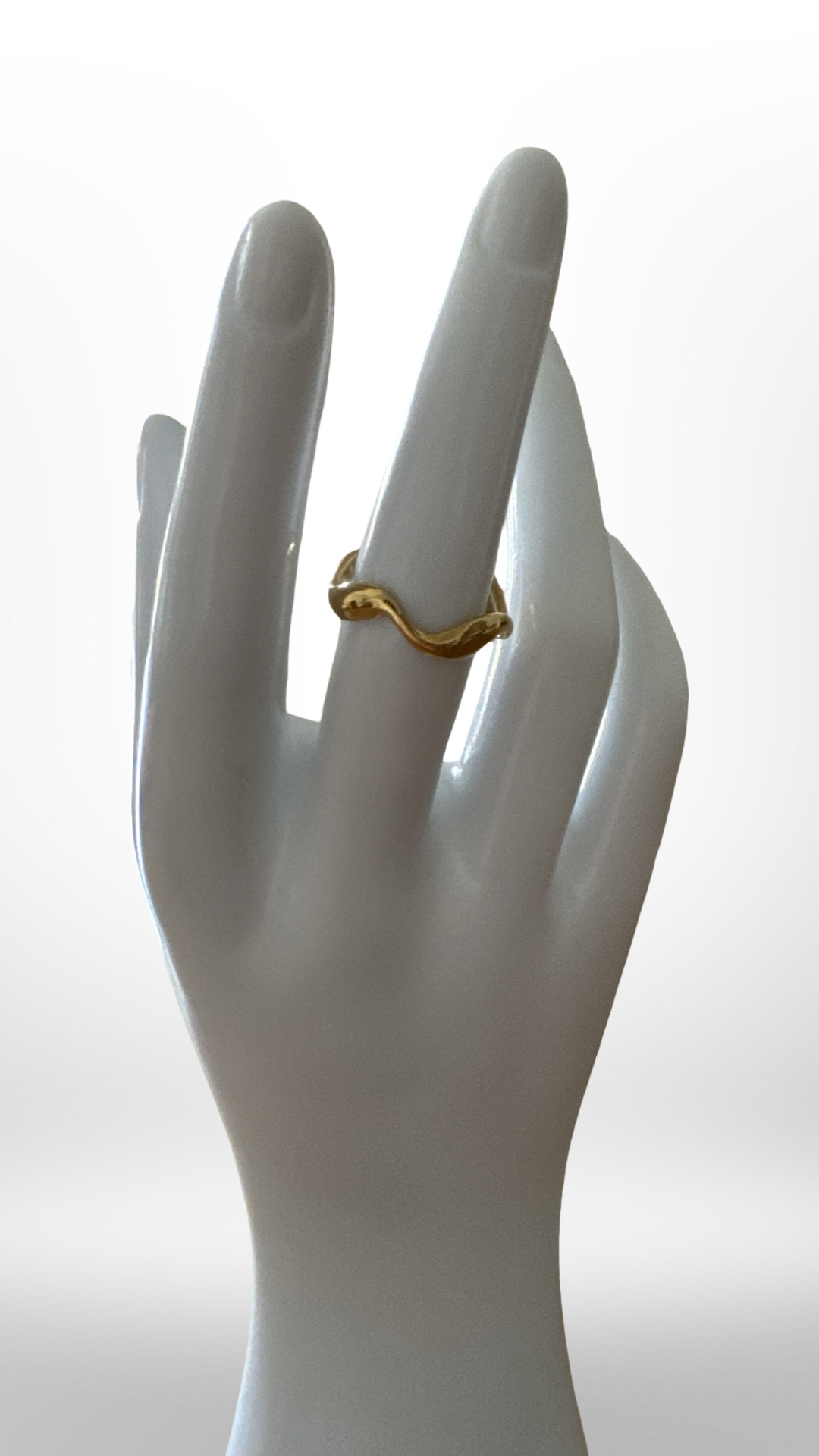 La bague Vaga trace une courbe délicate autour du doigt. Son design fluide et irrégulier évoque le mouvement des vagues ou les lignes libres de la nature. À la fois simple et sculpturale, elle sublime la main avec subtilité et modernité.